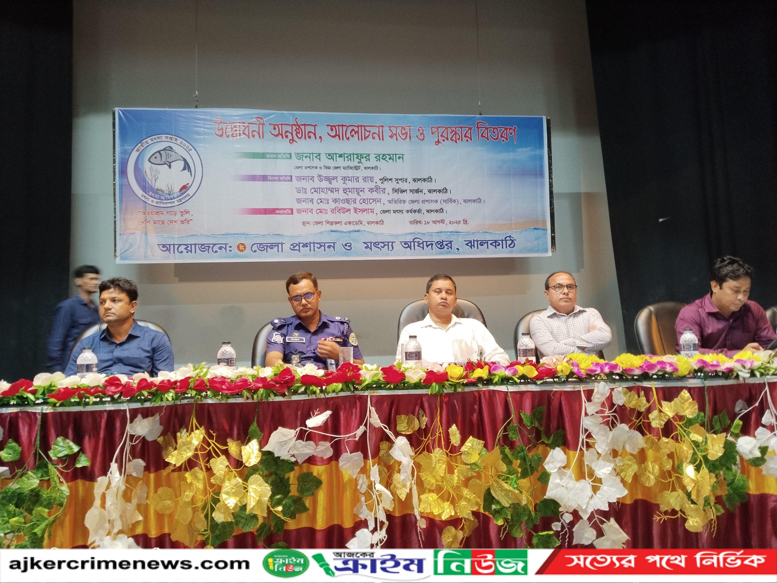 ঝালকাঠি প্রতিনিধি: ঝালকাঠিতে রবিবার ১৮ আগষ্ট জেলা প্রশাসন ও মৎস্য অধিদপ্তরের আয়োজনে "অভয়াশ্রম গড়ে তুলি,দেশী মাছে দেশ ভরি"এই স্লোগান সামনে রেখে পালিত হলো জাতীয় মৎস্য সপ্তাহ ২০২৫।