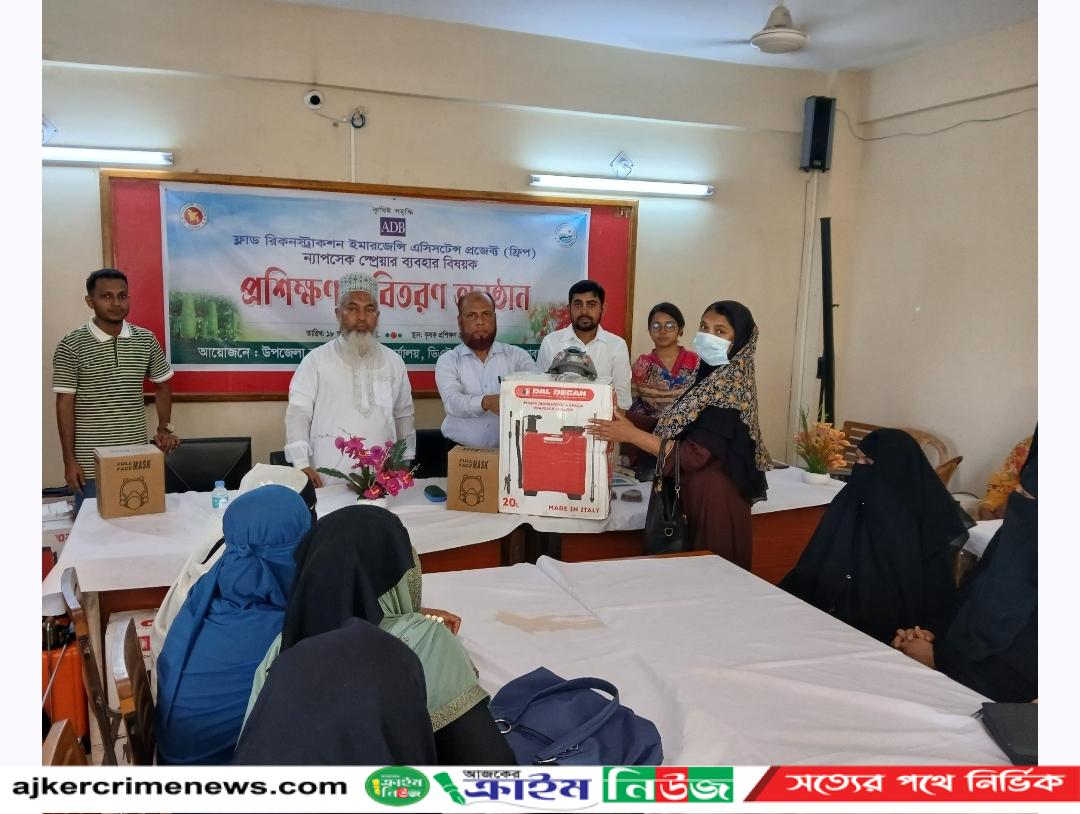 ফ্লাড রিকনস্ট্রাকশন ইমারজেন্সি এসিসটেন্স প্রজেক্টের আওতায় উপজেলার ১০ টি ইউনিয়নের ৯০ টি কৃষক-কৃষাণী গ্রুপের মাঝে বিনামূল্যে ন্যাপসেক স্প্রেয়ার ও সেফটি কিট বিতরণ করা হয়।