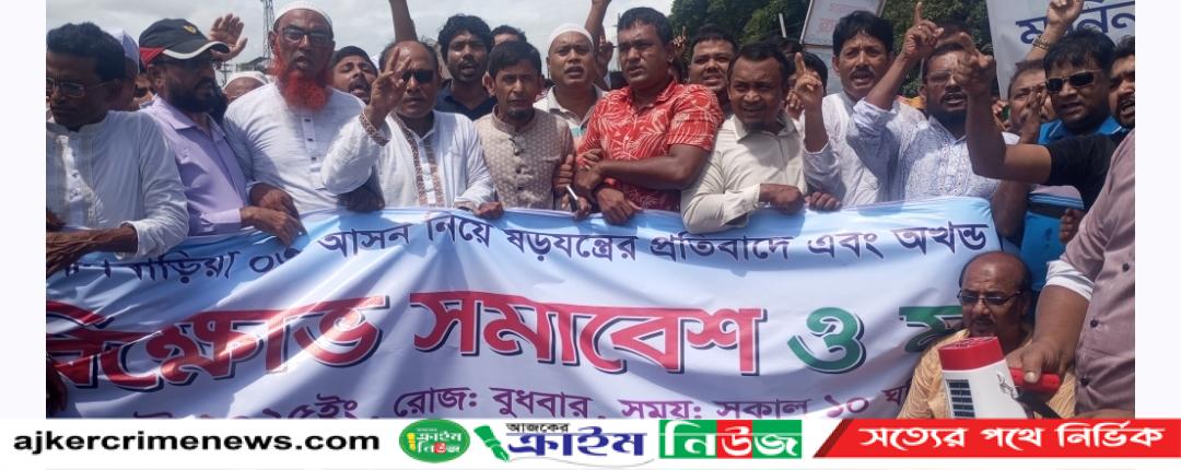 ব্রাহ্মণবাড়িয়ার (সদর -বিজয়নগর)৩ আসনের বিজয়নগর উপজেলার ৩ টি ইউনিয়ন বুধন্তি, চান্দুরা ও হরষপুরকে বাহ্মণবাড়িয়া ২(সরাইল- আশুগঞ্জ) আসনের সাথে যুক্ত করে সংসদীয় আসনের সীমানা পুনর্বিন্যাস সংক্রান্ত নির্বাচন কমিশনের সিদ্ধান্তের প্রতিবাদে ২০শে আগস্ট (বুধবার) সকাল ১০ টায় উপজেলার ইসলামপুর ও চান্দুরায় সর্বদলীয় ঐক্য পরিষদের উদ্যোগে বিক্ষোভ মিছিল ও সমাবেশ করেছে।এতে ঢাকা সিলেট মহাসড়কে প্রায় ২ ঘন্টা যাবত যানচলাচল বন্ধ ছিল।এসময় বিশ্বরোড থেকে মাধবপুর পর্যন্ত প্রায় ২০ কিলোমিটার এলাকায় যানজট দেখা যায়।এতে করে পথচারীরা চরম বিপাকে পরেছে। বিক্ষোভ সমাবেশে বক্তব্য রাখেন সর্বদলীয় ঐক্য পরিষদের আহবায়ক এড.ইমাম হোসেন, যুগ্ন আহবায়ক ডা: রফিক, হেফাজতের সাধারণ সম্পাদক আফজাল হোসেন,রাষ্ট্রো মিয়া,আলী হোসেন, জেলা তরুণ দলের সভাপতি আজিজুর রহমান হেলাল,বিএনপির সিনিয়র সহসভাপতি নাজমুল হক, উপজেলা যুবদলের যুগ্ম আহবায়ক ইয়ার মোহাম্মদ রাসেল,জামাত নেতা কাজী মনিরুল ইসলাম,কামাল মিয়া, সাদ্দাম মিয়া, হাসান ভুইয়া তাতি দলের সম্পাদক মঞ্জু মিয়া সহ বিভিন্ন দলের নেতারা। বক্তারা বলেন, স্বাধীনতার পর থেকে তিতাস পুর্বাঞ্চলের ১০ টি ইউনিয়ন নিয়ে নেতারা খেলা করছে। নেতাদের সুবিধার্থে উপজেলার ৩ টি ইউনিয়নকে নেতাদের ইইচ্ছামত সরাইল,নাসিরনগর ও সদরে দেয়।আমরা ১০ ইউনিয়ন ভাই ভাই একসাথে থাকতে চাই।আগামী ২৪ তারিখ শুনানিতে ঝামেলা শেষ না করলে অনির্দিষ্ট কালের জন্য ঢাকা সিলেট মহাসড়কের বিজয়নগর এলাকা ব্লকেড করে দেওয়া হবে।