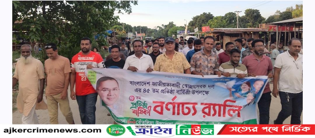 তেঁতুলিয়া (পঞ্চগড়) প্রতিনিধিঃ তেঁতুলিয়ায় বর্ণাঢ্য আয়োজনে বাংলাদেশ জাতীয়তাবাদী স্বেচ্ছাসেবক দলের ৪৫ তম প্রতিষ্ঠাবার্ষিকী পালিত হয়েছে । এ উপলক্ষে র্যালী ও আলোচনা সভা অনুষ্ঠিত হয়েছে।