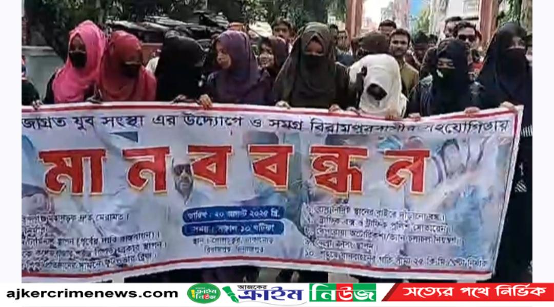 দিনাজপুরের বিরামপুর উপজেলায় সড়ক দুর্ঘটনা প্রতিরোধ ও নিরাপদ সড়ক রোধে ১০ দফা দাবি বাস্তবায়নে মানববন্ধন ও বিক্ষোভ মিছিল অনুষ্ঠিত হয়েছে। ‘বিরামপুর জাগ্রত যুব সংস্থা’র উদ্যোগে এবং সর্বস্তরের জনসাধারণের অংশগ্রহণে বুধবার (২০ আগস্ট) সকাল ১০টায় পৌর শহরের ঢাকা মোড়ে এই কর্মসূচি পালিত হয়। পরে উপজেলা নির্বাহী কর্মকর্তার কাছে একটি স্মারকলিপি প্রদান করা হয়।