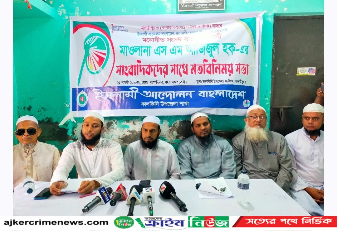 বৃহস্পতিবার সকালে কালকিনি উপজেলা সদরে অবস্থিত ইসলামী আন্দোলন বাংলাদেশের স্থানীয় কার্যালয়ে সাংবাদিকদের সাথে আয়োজিত এক মতবিনিময় সভায় তিনি এ কথা বলেন।