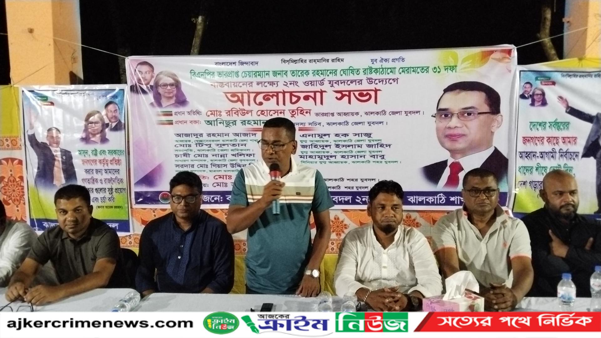ঝালকাঠি প্রতিনিধি:বিএনপির ভারপ্রাপ্ত চেয়ারম্যান তারেক রহমানের ঘোষিত রাষ্ট্রকাঠামো মেরামতের ৩১ দফা বাস্তবায়নের লক্ষ্যে ঝালকাঠি পৌর এলাকার ২ নং ওয়ার্ডের যুবদলের উদ্যোগে শুক্রবার সন্ধ্যায় বাগান বাড়ি আলোচনা সভা অনুষ্ঠিত হয়।