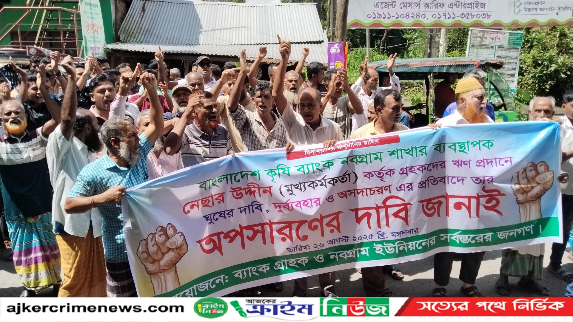 এবিষয়ে নবগ্রামের বাসিন্দা সৈয়দ মোঃ নুরুল হকসহ ১৭ জন গ্রাহক ও সাধারণ মানুষ মিলে কৃষি ব্যাংকের ব্যবস্থাপনা পরিচালক বরাবর কয়েক মাস আগে একটি অভিযোগ দায়ের করেন। অভিযোগ পত্রে ব্যাংকের ব্যবস্থাপকের বিরুদ্ধে গ্রাহকদের সাথে দুর্ব্যবহার, লোনও ব্যাংক সেবার বিনিময়ে অবৈধভাবে অর্থ গ্রহণ ও আওয়ামীলীগ সমর্থিত স্বাধীনতা ব্যাংকার পরিষদের নেতা থাকাকালীন সময়ে নানা অভিযোগ বিষয়ে সঠিক বিচার পাওয়ার দাবি জানান।