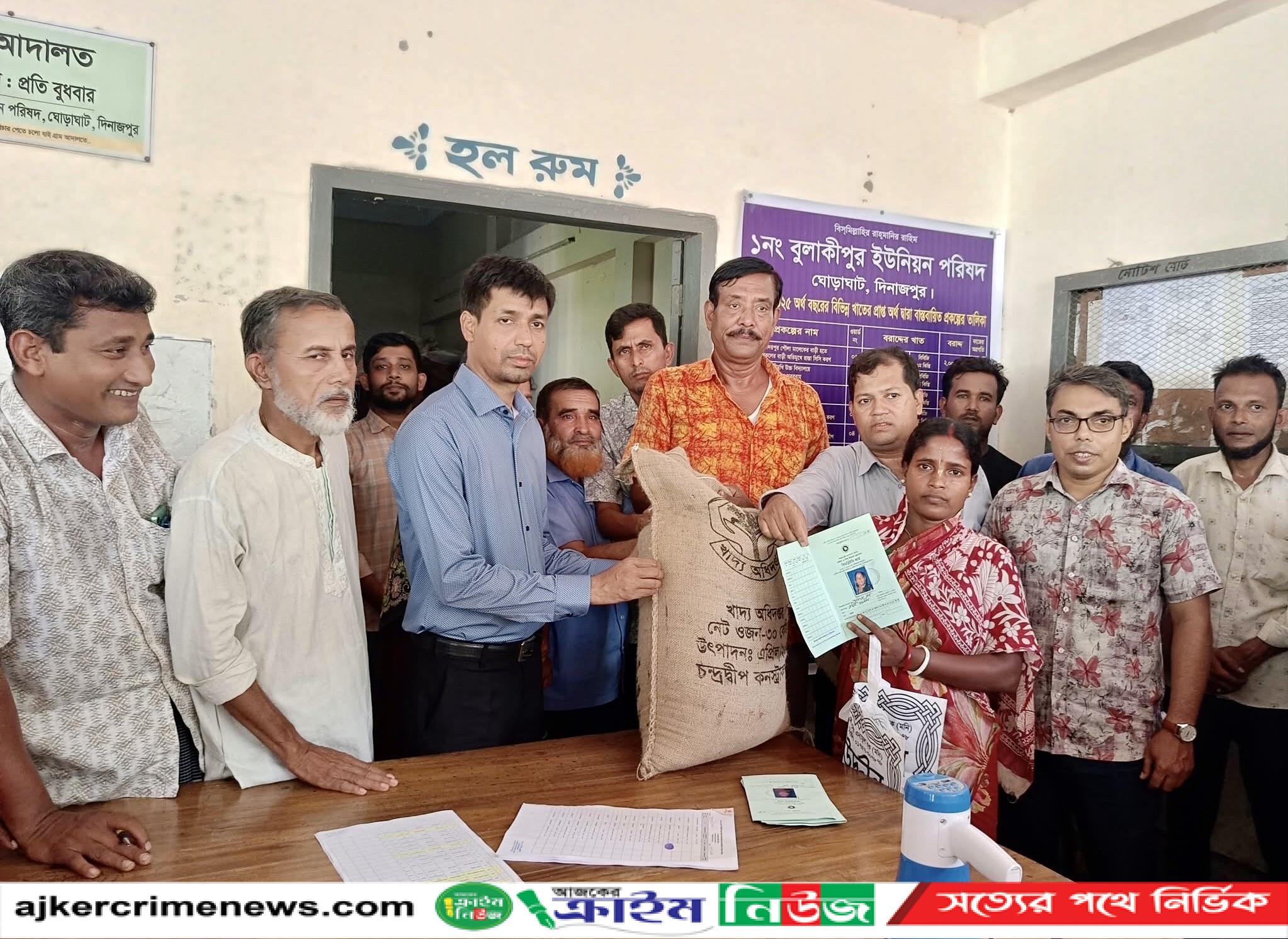 দিনাজপুরের ঘোড়াঘাট উপজেলার ১নং বুলাকীপুর ইউনিয়নে ২০২৫-২০২৬ অর্থ বছরের ভিডব্লিউবি কর্মসূচির আওতায় ৬২০ জন উপকারভোগীর মাঝে ৩০ কেজি করে চাল বিতরণ কার্যক্রমের উদ্বোধন অনুষ্ঠিত হয়েছে।