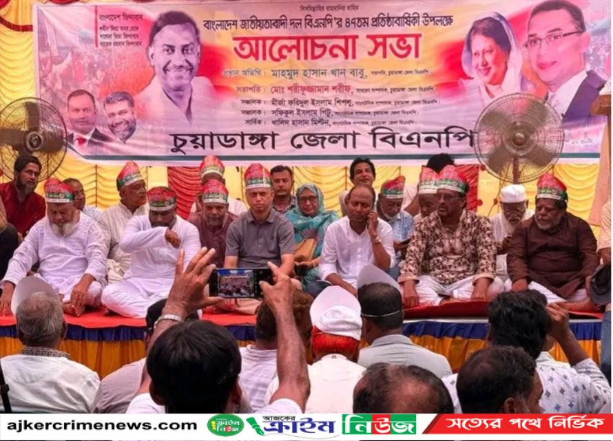 শোভাযাত্রায় নেতৃত্ব দেন জেলা বিএনপির সভাপতি মাহমুদ হাসান খান বাবু ও সাধারণ সম্পাদক শরীফুজ্জামান শরীফ।এছাড়া উপস্থিত ছিলেন চুয়াডাঙ্গ জেলা বিএনপির সাংগঠনিক সম্পাদক মীর্জা ফরিদুল ইসলাম শিপলু, সাংগঠনিক সম্পাদক শফিকুল ইসলাম পিটু, সাংগঠনিক সম্পাদক খালিদ মাহমুদ মিল্টন, জীবননগর উপজেলা বিএনপির সভাপতি আনোয়ার হোসেন খান খোকন, চুয়াডাঙ্গা পৌর বিএনপির সভাপতি সিরাজুল ইসলাম মনি, সদর উপজেলা বিএনপির সভাপতি, সিরাজুল ইসলাম মনি, জীবননগর পৌর বিএনপির সভাপতি শাহজাহান কবীর, আলমডাঙ্গা উপজেলা বিএনপির সিনিয়র সহ-সভাপতি আখতার হোসেন জোয়ার্দার, পৌর বিএনপির সভাপতি আজিজুর রহমান পিন্টু, আলমডাঙ্গা উপজেলা বিএনপির সাধারণ সম্পাদক আমিনুল হক রোকন, জীবননগর উপজেলা বিএনপির সাধারণ সম্পাদক শাহজাহান আলী, সদর উপজেলা বিএনপির সাধারণ সম্পাদক মনিরুজ্জামান লিপটন, দামুড়হুদা উপজেলা বিএনপির সাধারণ সম্পাদক মো: রফিকুল হাসান তনু, দর্শনা পৌর বিএনপির প্রধান সমন্বয়ক মো: হাবিবুর রহমান বুলেট, সমন্বয়ক কমিটির সদস্য এনামুল হক শাহ মুকুল, দর্শনা থানা বিএনপির কৃষকদলের আহবায়ক আশরাফুল হক বিপ্লব,চুয়াডাঙ্গা পৌর বিএনপির সাধারণ সম্পাদক মাহমুদুল হক পল্টু, আলমডাঙ্গা পৌর বিএনপির সাধারণ সম্পাদক জিল্লুর রহমান ওল্টু, জীবনগর পৌর বিএনপির সাধারণ সম্পাদক শামসুজ্জামান ডাবলু, জেলা মহিলা দলের সভাপতি রউফ উর নাহার রিনা, জেলা কৃষক দলের আহবায়ক মোকাররম হোসেন, জেলা যুবদলের সাধারণ সম্পাদক মো সাইফুর রশীদ ঝন্টু, জেলা কৃষক দলের সদস্য সচিব ও বাড়াদী ইউনিয়ন পরিষদের চেয়ারম্যান তোবারক হোসেন, জেলা জাসাস এর সাধারণ সম্পাদক সেলিমুল হাবিব সেলিম, জেলা মৎস্যজীবি দলের আহবায়ক কামরুজ্জামান বাবলু, জেলা আইনজিবি ফোরাম এর আহবায়ক এ্যাড. আ স,ম আব্দুল রউফ, জেলা ওলামা দলের আহবায়ক মওলানা আনোয়ার হোসেন, জেলা ছাত্রদলের সিনিয়র যুগ্ম সম্পাদক জুয়েল মাহমুদ, সহ- জেলার ৪ উপজেলার বিভিন্ন এলাকা থেকে বিএনপি, যুবদল, ছাত্রদল, কৃষকদল, স্বেচ্ছাসেবক দলসহ সহযোগী সংগঠনের নেতা ও কর্মীরা প্রতিষ্ঠাবার্ষিকীর কর্মসূচিতে অংশ নেন। পরে এক আলোচনা সভা অনুষ্ঠিত হয়। জেলা বিএনপির সাধারণ সম্পাদক শরীফুজ্জামান শরীফের সভাপতিত্বে আলোচনা অনুষ্ঠানে প্রধান অতিথির বক্তব্য দেন সভাপতি মাহমুদ হাসান খান বাবু। সাংগঠনিক সম্পাদক মির্জা ফরিদুল ইসলাম শিপলু ও শফিকুল ইসলাম পিটু অনুষ্ঠানটি সঞ্চালনা করেন।