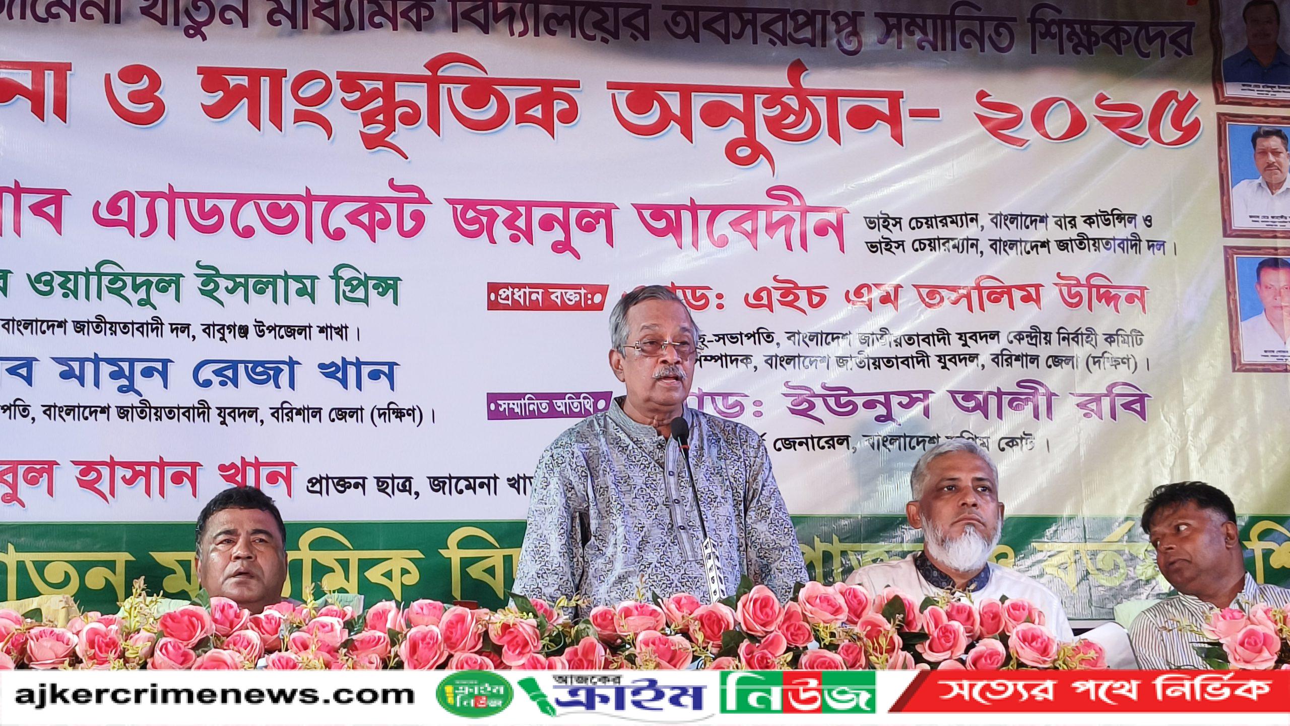 বরিশালের বাবুগঞ্জ উপজেলার ঐতিহ্যবাহী জামেনা খাতুন মাধ্যমিক বিদ্যালয় প্রাঙ্গণে অনুষ্ঠিত অবসরপ্রাপ্ত শিক্ষকদের সংবর্ধনা ও সাংস্কৃতিক অনুষ্ঠানে প্রধান অতিথির বক্তব্যে তিনি এসব কথা বলেন। এছাড়াও তিনি অনুষ্ঠানের আয়োজকদের উদ্দেশ্যে বলেন, এটি ছিল শিক্ষা, শ্রদ্ধা ও সংস্কৃতির অপূর্ব সমন্বয়ে এক হৃদয়গ্রাহী আয়োজন—যা দীর্ঘদিন মনে রাখবে জামেনা খাতুন বিদ্যালয়ের শিক্ষক-শিক্ষার্থী ও এলাকাবাসী।