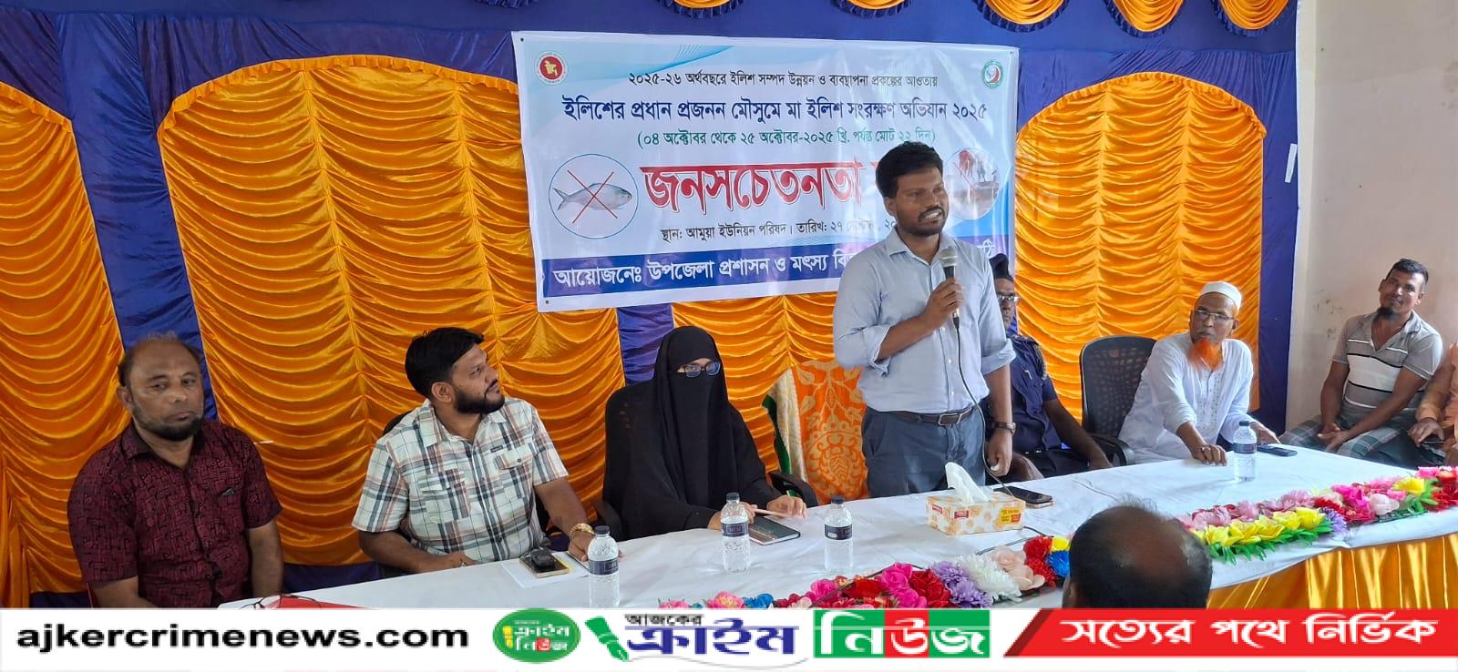 এবিষয়ে উপজেলা নির্বাহী কর্মকর্তা বলেন ২০২৫-২৬ অর্থ বছরে ইলিশ সম্পদ উন্নয়ন ও ব্যবস্থাপনা প্রকল্পের আওতায় ইলিশ প্রধান প্রজনন মৌসুমে মা ইলিশ সংরক্ষণ অভিযান আগামী ৪ ঠা অক্টোবর থেকে ২৫ অক্টোবর পর্যন্ত মোট ২২ দিন নদী খাল বিলে মৎস্য অহরন বিক্রয় মজুদ পরিবহন সম্পূর্ণরূপে নিষিদ্ধ করেছে সরকার।