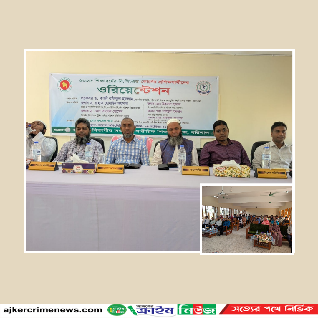 বরিশাল বিভাগীয় সরকারি শারীরিক শিক্ষা কলেজে বিপিএড ২০২৫ শিক্ষাবর্ষের শিক্ষার্থীদের ওরিয়েন্টেশন ক্লাস অনুষ্ঠিত হয়েছে। ১৬ অক্টোবর (বৃহস্পতিবার) সকাল ১০ টায় বরিশাল সদরের কলেজ মিলনায়তনে এ অনুষ্ঠানের আয়োজন করা হয়।