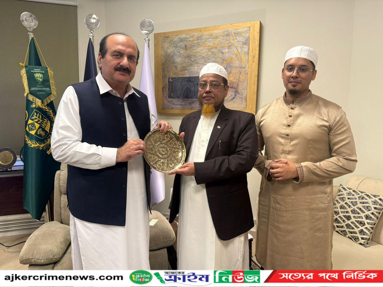 পাকিস্তানের ইসলামাবাদে অবস্থিত প্রাইম মিনিস্টার দপ্তরে দেশটির যুব মন্ত্রণালয়ের উপমন্ত্রী রানা মাশহুদ আহমেদ খান গতকাল বৃহস্পতিবার ইসলামি আন্দোলন বাংলাদেশের সিনিয়র প্রেসডিয়াম সদস্য ও ইসলামী ফাউন্ডেশনের বোর্ড অব গভর্নসের গভর্ণর সৈয়দ মোসাদ্দেক বিল্লাহ আল-মাদানীর সাথে সৌজন্যমূলক বৈঠক করেছেন। সাথে উপস্থিত ছিলেন যুব মন্ত্রণালয়ের অন্যান্য কর্মকর্তাগণ। আগামী ফেব্রুয়ারিতে বাংলাদেশে আসন্ন নির্বাচন সুষ্ঠু, নিরপেক্ষ, গ্রহণযোগ্য এবং আন্তর্জাতিক মানের হওয়ার জন্য আশাবাদ ব্যক্ত করেছেন উপমন্ত্রী।