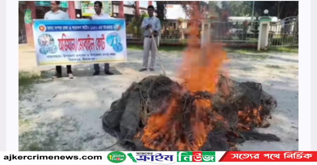 সোমবার (২০অক্টোবর) দিনাজপুর জেলার বিরামপুর উপজেলার ছোট যমুনা নদীতে অবৈধ নিষিদ্ধ কারেন্ট জাল, শয়তান জাল দিয়ে মাছ ধরার খবর পেয়ে উপজেলা প্রশাসনের নির্দেশনায় অভিযান পরিচালনা করে বিপুল পরিমাণ অবৈধ নিষিদ্ধ জাল জব্দ করা হয়েছে।