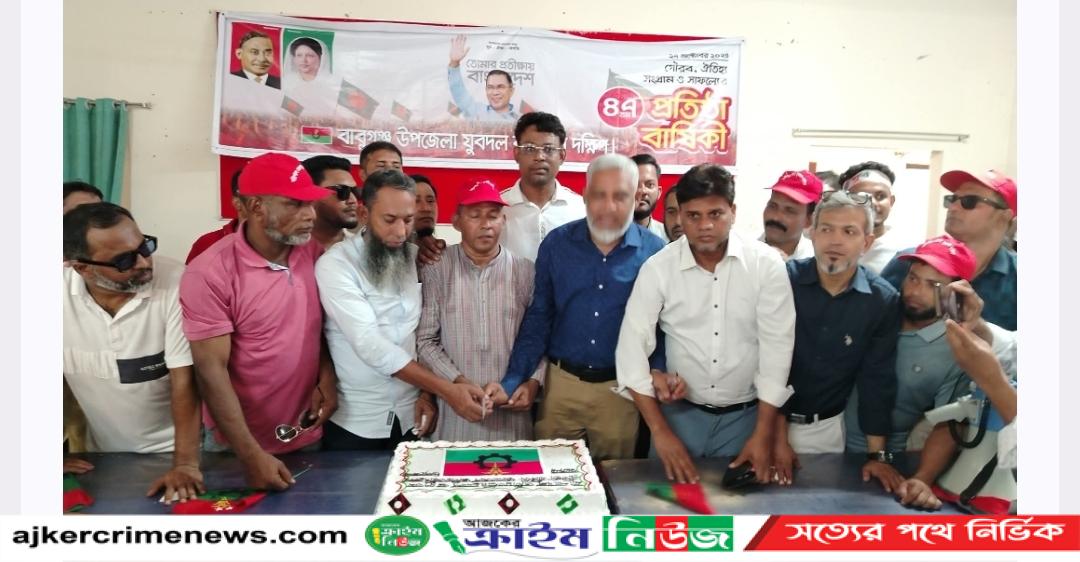 বাবুগঞ্জ (বরিশাল) প্রতিনিধিঃ বাবুগঞ্জে বাংলাদেশ জাতীয়তাবাদী দল যুবদলের ৪৭ তম প্রতিষ্ঠা বার্ষিকী বর্ণাঢ্য আয়োজনে নানা কর্মসূচির মধ্যেদিয়ে পালিত হয়েছে। যুবদলের প্রতিষ্ঠা বার্ষিকী উপলক্ষে বাবুগঞ্জ উপজেলা চত্বরে বর্ণাঢ্য র্যালি ও উপজেলা পরিষদ মিলনায়তনে কেক কাঁটার মধ্যে দিয়ে পালন করছে বাবুগঞ্জ উপজেলা যুবদল।