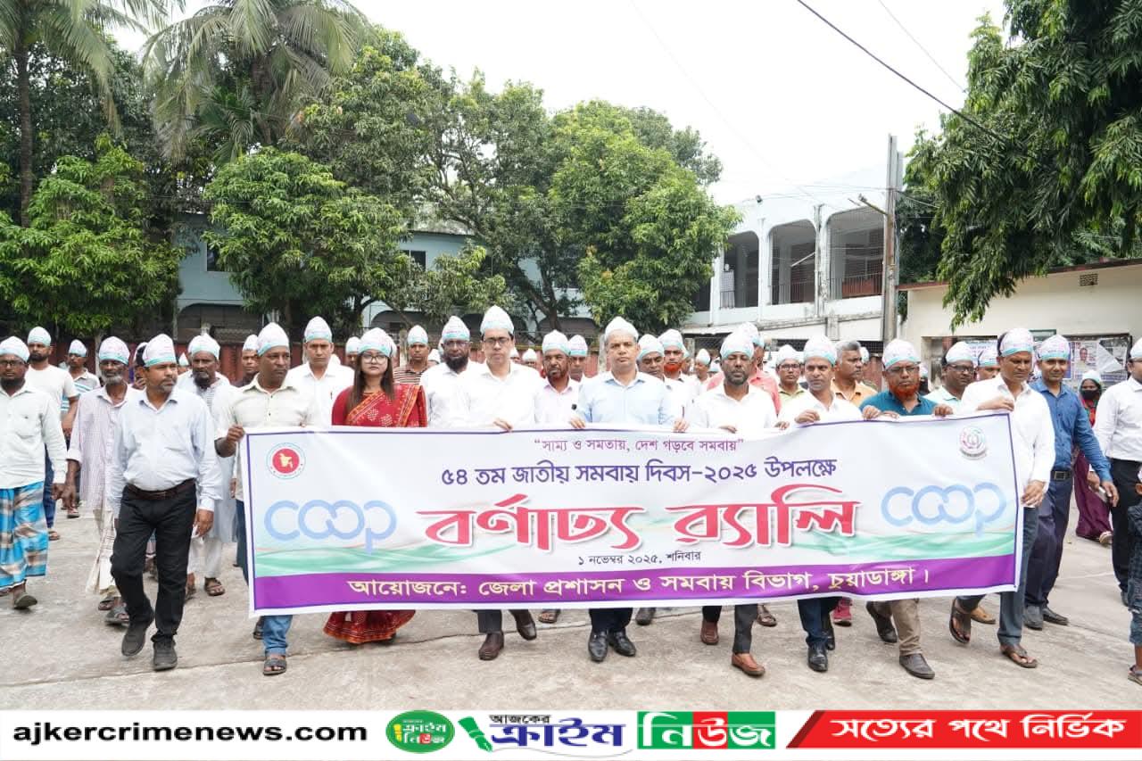 শনিবার সকাল ১০ টায় জেলা প্রশাসন এবং সমবায় বিভাগ, চুয়াডাঙ্গার যৌথ আয়োজনে “৫৪তম জাতীয় সমবায় দিবস-২০২৫” উদযাপিত হয়। দিবসটি উপলক্ষে দিনব্যাপী বিভিন্ন কর্মসূচির আয়োজন করা হয়। সকালে সমবায় বিভাগ, চুয়াডাঙ্গার প্রাঙ্গণ থেকে এক বর্ণাঢ্য র্যালি ও পদযাত্রা শেষে জেলা প্রশাসকের কার্যালয়ে এসে শেষ হয়। র্যালি শেষে জেলা প্রশাসকের সম্মেলন কক্ষে “৫৪তম জাতীয় সমবায় দিবস-২০২৫” উপলক্ষে এক আলোচনা সভা ও চেক বিতরণ অনুষ্ঠান অনুষ্ঠিত হয়।অতিরিক্ত জেলা প্রশাসক (সার্বিক) আহমেদ মাহবুব-উল-ইসলাম এর সভাপতিত্বে উক্ত সভায় প্রধান অতিথি হিসেবে উপস্থিত ছিলেন চুয়াডাঙ্গা জেলার জেলা প্রশাসক ও জেলা ম্যাজিস্ট্রেট মোহাম্মদ জহিরুল ইসলাম।