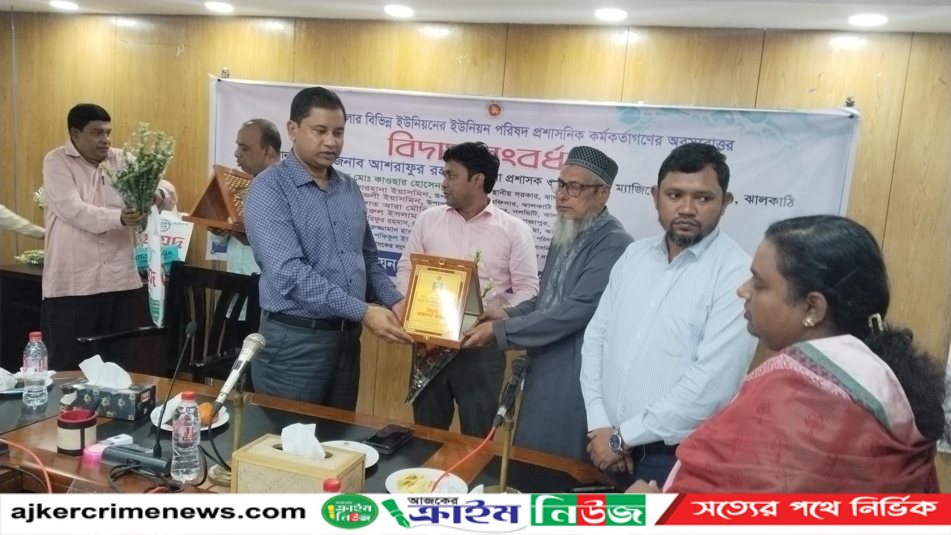 ঝালকাঠি প্রতিনিধি: ঝালকাঠি জেলার বিভিন্ন ইউনিয়নের ইউনিয়ন পরিষদ প্রশাসনিক ৭ জন অবসরোত্তর কর্মকর্তাগণের বিদায় সংবর্ধনা অনুষ্ঠান বুধবার বিকেলে ঝালকাঠি জেলা প্রশাসকের কনফারেন্স রুমে অনুষ্ঠিত হয়।