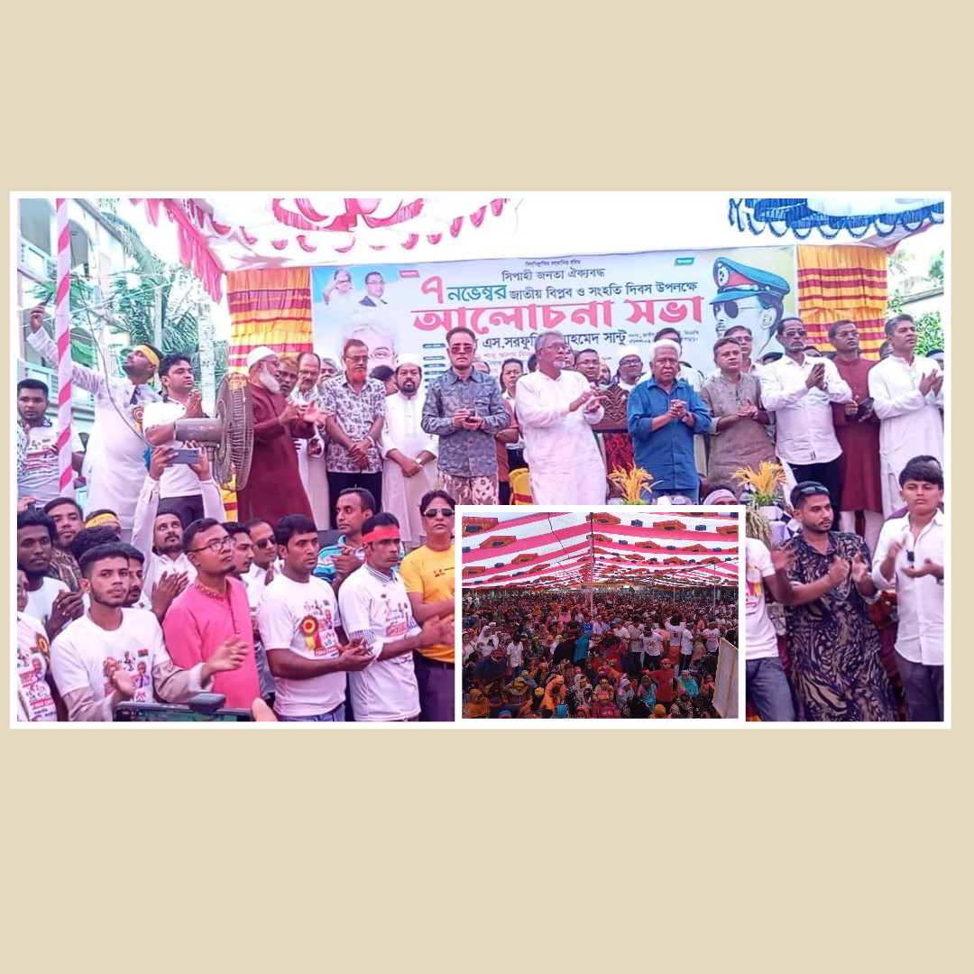 বরিশালের বানারীপাড়ায় জাতীয় বিপ্লব ও সংহতি দিবস পালিত হয়েছে। ঐতিহাসিক ৭ নভেম্বর উপলক্ষ্যে শুক্রবার (৭ নভেম্বর) বেলা ৩ টায় উপজেলার বালিকা মাধ্যমিক বিদ্যালয়ের প্রাঙ্গণে এক আলোচনা সভার আয়োজন করে উপজেলা,পৌর বিএনপি ও অঙ্গ সহযোগী সংগঠন।