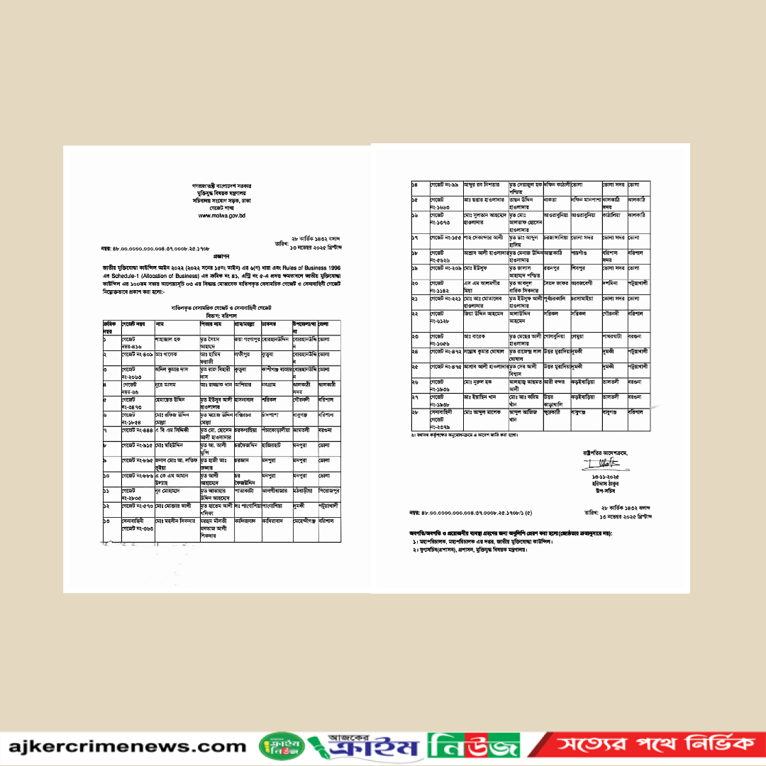 এছাড়াও একাধিক ব্যক্তির নাম, তাদের পিতার নাম, স্থায়ী ঠিকানা ও সংশ্লিষ্ট থানার তথ্য উল্লেখ করে জানানো হয়েছে যে—তারা মুক্তিযোদ্ধা হিসেবে ঘোষিত হওয়ার যোগ্যতা পূরণ করেননি।