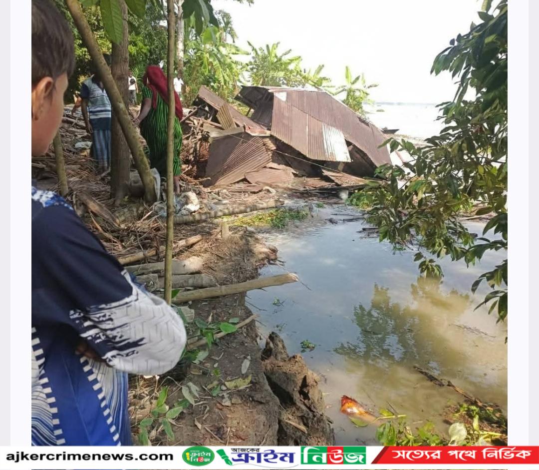 নদী ভাঙ্গনে বিলীন হয়ে যায়। এসময় তার পরিবারের লোকজন ঘরের মধ্যে না থাকায় তারা বড় ধরণের দুর্ঘটনা থেকে রক্ষা পায়।