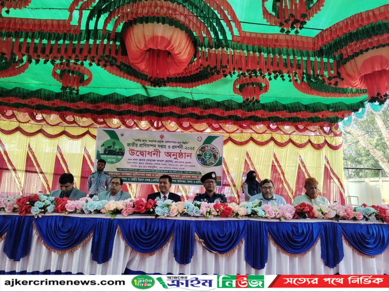 এ উপলক্ষে এক আলোচনা সভা অনুষ্ঠিত হয়। জেলা প্রাণিসম্পদ অফিসার ডা. শাহাবুদ্দিন আহমেদের সভাপতিত্বে আলোচনা সভার প্রধান অতিথির বক্তব্য রাখেন জেলা প্রশাসক। চুয়াডাঙ্গা সরকারি কলেজের সহকারী অধ্যাপক মনিরুজ্জামানের সঞ্চালনায় অনুষ্ঠানে বিশেষ অতিথির বক্তব্য রাখেন পুলিশ সুপার খন্দকার গোলাম মওলা, উপজেলা প্রাণিসম্পদ অফিসার মোস্তাফিজুর রহমান, পৌর বিএনপির সভাপতি সিরাজুল ইসলাম মনি, জেলা প্রেসক্লাবের সাধারণ সম্পাদক বিপুল আশরাফ, খামারী আরিফ হোসেন প্রমুখ। দিনব্যাপী প্রাণিসম্পদ প্রদর্শনীতে ৩৪ টি স্টল স্থান পেয়েছে। এর মধ্যে গরু, ছাগল, ভেড়া, গাড়ল, কবুতর, ও মুরগী রয়েছে।