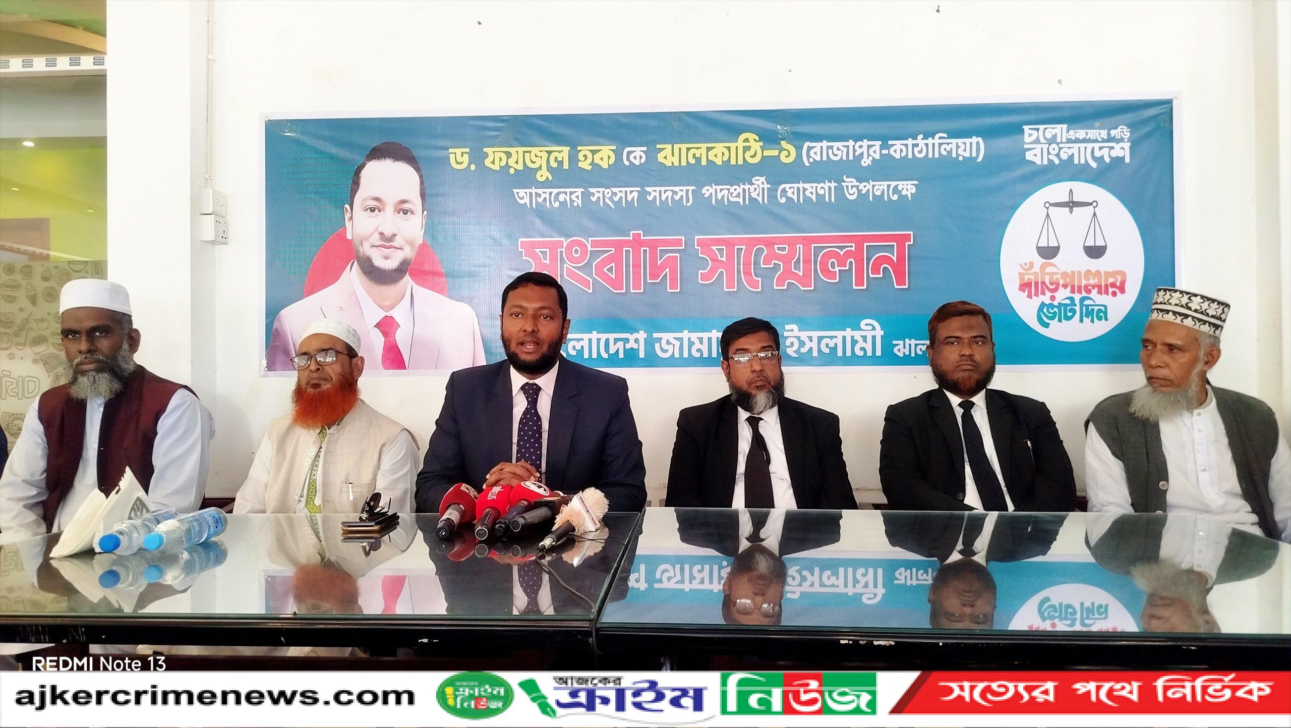 ঝালকাঠি প্রতিনিধিঃ ত্রয়োদশ জাতীয় সংসদ নির্বাচন ঝালকাঠি-১ (রাজাপুর-কাঁঠালিয়া) আসনে সম্প্রতি পদত্যাগ করা বিএনপির মালয়েশিয়া কমিটির সহ-সমাজকল্যাণ বিষয়ক সম্পাদক ড. ফয়জুল হক'কে বাংলাদেশ জামায়াতে ইসলামী থেকে প্রার্থী ঘোষণা করা হয়েছে।