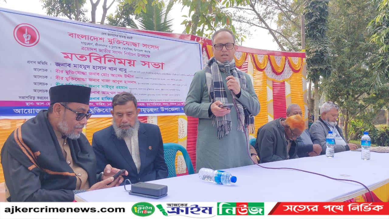 প্রধান অতিথির বক্তব্যে মাহমুদ হাসান খান বাবু বলেন, “মুক্তিযোদ্ধারা জাতির শ্রেষ্ঠ সন্তান। একটি অবাধ, সুষ্ঠু ও নিরপেক্ষ নির্বাচনের মাধ্যমে দেশে গণতন্ত্র পুনরুদ্ধার এবং জনগণের ভোটাধিকার নিশ্চিত করতে মুক্তিযোদ্ধাদের ভূমিকা অপরিসীম।” তিনি বলেন "মুক্তিযোদ্ধারা কাকে ভোট দিবে, তা তাদের গণতান্ত্রিক অধিকার। আমার কাছে মুক্তিযোদ্ধার পরিচয় হলো তিনি একজন মুক্তিযোদ্ধা। তিনি কোন দলের নন, দেশের সম্পদ। আমি যদি নির্বাচিত হতে পারি, আমার কাছে সকল বীর মুক্তিযুদ্ধাদের সমান অধিকার এবং সম্মান থাকবে। অনুষ্ঠানে আলোচক হিসেবে উপস্থিত ছিলেন চুয়াডাঙ্গা জেলা কমান্ডের আহবায়ক বীর মুক্তিযোদ্ধা আবেছ উদ্দিন, যুগ্ম আহবায়ক বীর মুক্তিযোদ্ধা খাজা আবুল হাসনাত, জীবননগর উপজেলা কমান্ডের আহবায়ক বীর মুক্তিযোদ্ধা সাইদুর রহমান ও চুয়াডাঙ্গা উপজেলা কমান্ডের সদস্য সচিব বীর মুক্তিযোদ্ধা আহম্মদ আলী।সভায় বক্তারা আসন্ন জাতীয় সংসদ নির্বাচনকে কেন্দ্র করে এলাকার শান্তি-শৃঙ্খলা রক্ষা এবং একটি উৎসবমুখর নির্বাচনী পরিবেশ তৈরিতে ঐক্যবদ্ধভাবে কাজ করার প্রত্যয় ব্যক্ত করেন। মুক্তিযুদ্ধের চেতনাকে বাঁচিয়ে রাখার জন্য মুক্তিযুদ্ধের পক্ষের শক্তিকে জয়ী করার কোন বিকল্প নেই বলে তারা সকলকে সতর্ক করেন।