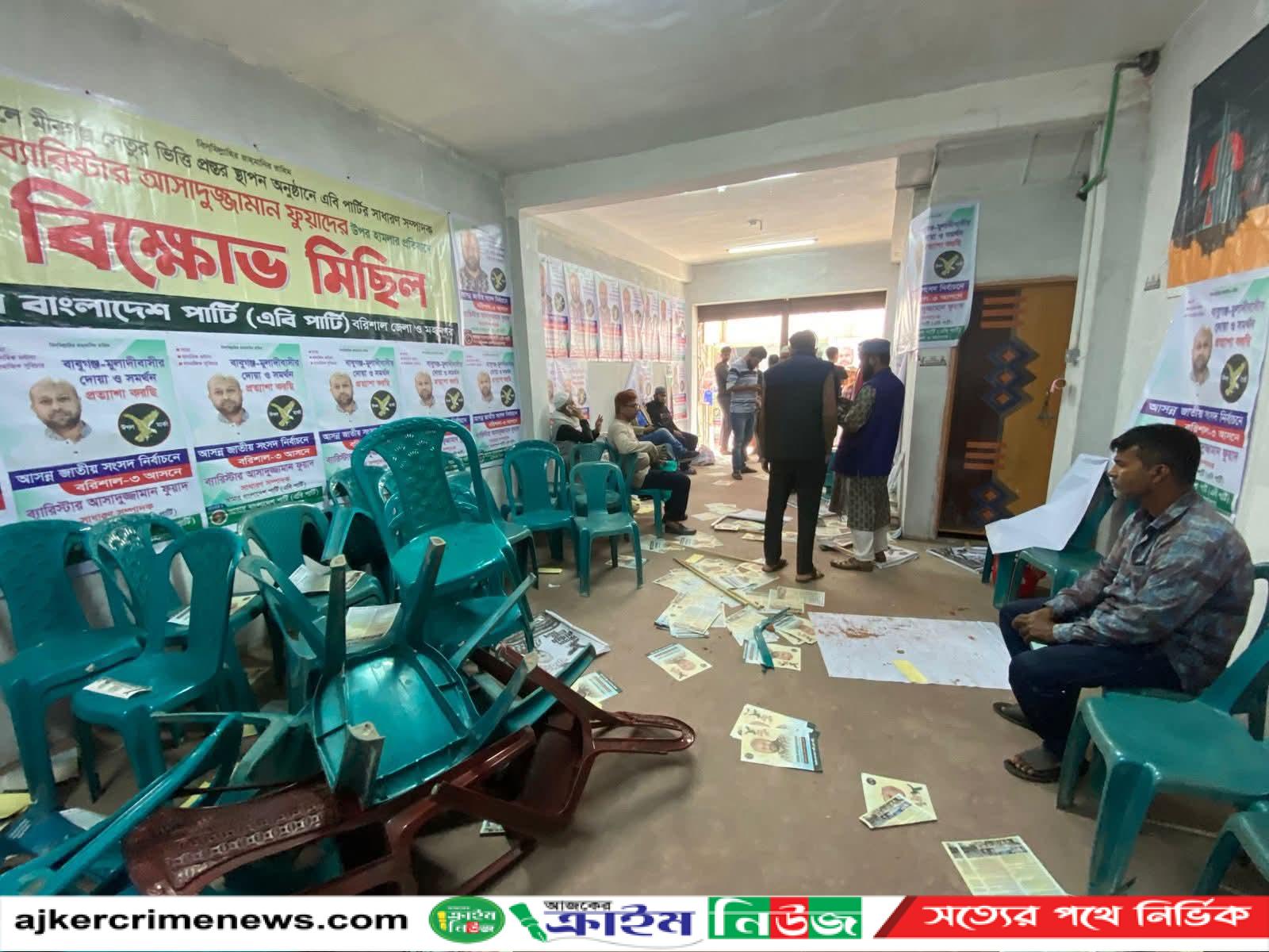 জাতীয় সংসদ নির্বাচনকে কেন্দ্র করে বরিশাল-৩ (বাবুগঞ্জ–মুলাদী) আসনের মাধবপাশা ইউনিয়নে ঈগল প্রতীকের নির্বাচনী কার্যালয়ে হামলা ও ভাঙচুরের অভিযোগ উঠেছে। এ ঘটনায় বিএনপি নেতাকর্মীদের বিরুদ্ধে অভিযোগ করেছেন আমার বাংলাদেশ (এবি) পার্টির প্রার্থী ও দলটির সাধারণ সম্পাদক ব্যারিস্টার আসাদুজ্জামান ফুয়াদ।