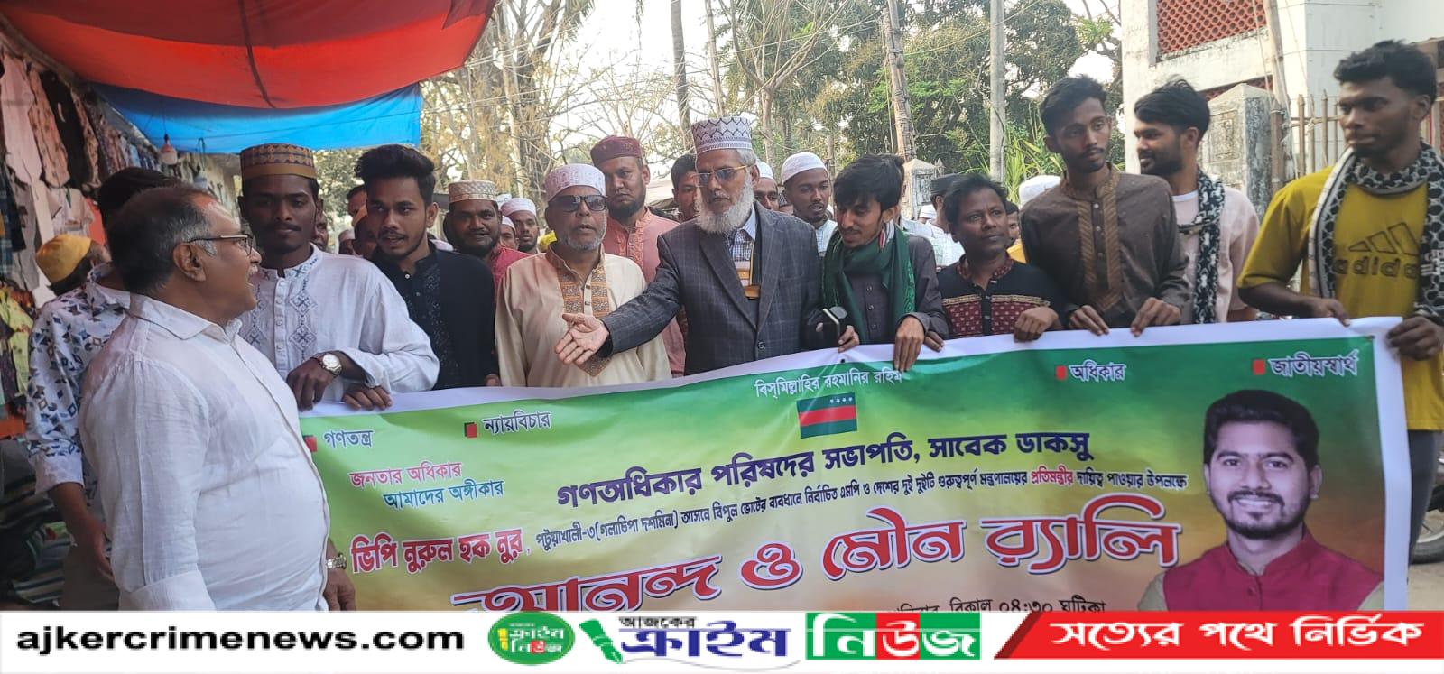 আজ কলাপাড়া উপজেলা গণঅধিকার পরিষদের উদ্যোগে পটুয়াখালী -৩ দশমিনা গলাচিপার বিপুল ভোটে বিজয়ী এমপি ও প্রতিমন্ত্রী ভিপি নুরুল হক নুর মন্ত্রী হিসাবে শপথ গ্রহণ করায় আনন্দ শোভাযাত্রা শেষে কলাপাড়া প্রেসক্লাব মিলনায়তনে দেশ জাতির মঙ্গল কামনা করে দোয়া মোনাজাত ও ইফতারের আয়োজন করা হয়েছে। উক্ত অনুষ্ঠানে সভাপতিত্ব করেন সংগঠনের আহ্বায়ক আব্দুস সালাম হাওলাদার, প্রধান অতিথি হিসাবে ভার্চুয়াল্লি যুক্ত থেকে ভাসন দানের কথা থাকলেও সময়ের অভাব এবং যান্ত্রিক ত্রুটির কারণে যুক্ত করা সম্ভব হয়নি তবে প্রধান বক্তা হিসাবে আমি গাজী আব্বাস উদ্দিন আহমেদ বাচ্চু অসুস্থতা নিয়েও কথা বলেছি, বিশেষ অতিথি হিসাবে উপস্থিত থেকে বক্তব্য রাখেন কলাপাড়া প্রেসক্লাবের সভাপতি নেসার উদ্দিন আহমেদ টিপু, বিশেষ অতিথি হিসাবে উপস্থিত থেকে দোয়া মোনাজাত পরিচালনা করেন কলাপাড়া প্রেসক্লাবের সাবেক সভাপতি জনাব হুমায়ূন কবির, বিশেষ অতিথি হিসাবে উপস্থিত ছিলেন কলাপাড়া থানার ভারপ্রাপ্ত কর্মকর্তা রবিউল ইসলাম সাহেব, উপস্থিত ছিলেন সৈয়দ রেজাউল করিম বিশিষ্ট সমাজ সেবক, উপস্থিত ছিলেন জনাব মোতালেব হাওলাদার সাবেক চেয়ারম্যান চাকামইয়া ইউপি, উপস্থিত ছিলেন জনাব শাহ্ আলম অবসরপ্রাপ্ত সার্জেন্টে যুগ্ম আহ্বায়ক গণঅধিকার পরিষদ কলাপাড়া উপজেলা শাখা , উপস্থিত ছিলেন মোয়াজ্জেম মুসুল্লি আহ্বায়ক মহিপুর থানা গণঅধিকার পরিষদ ,আরও উপস্থিত ছিল মন্টু মেম্বার লালুয়া ইউনিয়ন গণঅধিকার পরিষদের আহ্বায়ক। উপস্থিত ছিলেন কলাপাড়া প্রেসক্লাবের সকল জাতীয় ও আঞ্চলিক পত্রিকার সাংবাদিক বৃন্দ।