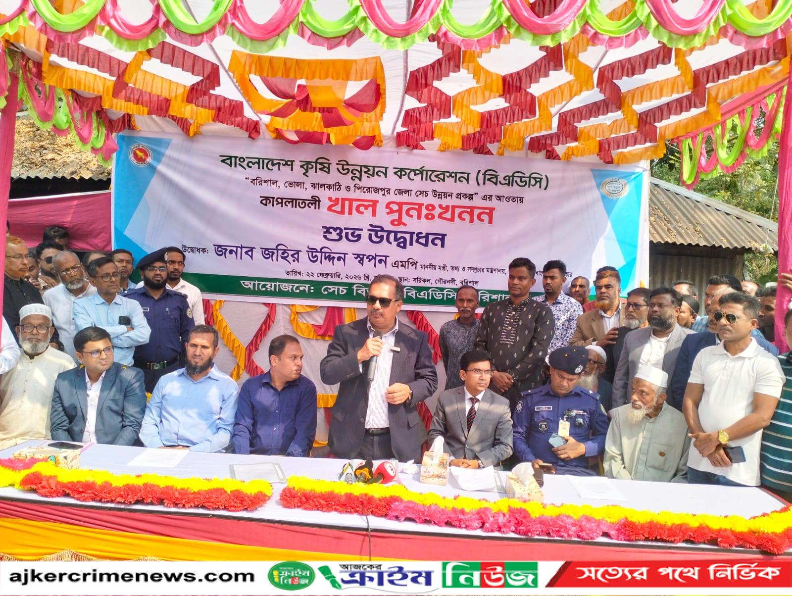 বরিশাল, ভোলা, ঝালকাঠি ও পিরোজপুর জেলা সেচ উন্নয়ন প্রকল্পের আওতায় গৌরনদীর সরিকল ইউনিয়নের কাপলাতলি খালের পূনঃখনন কর্মসূচির উদ্বোধনী অনুষ্টানে মন্ত্রী আরও বলেছেন, আমলা ও পুলিশকে জনগণর জন্য কাজ করার পরিবেশ তৈরী করে দিতে হবে।