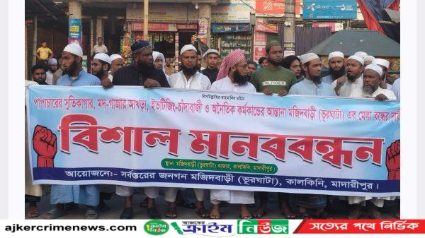 মোঃ রাজু আহম্মেদ, মদারীপুর জেলা প্রতিনিধিঃ আজ বৃহস্পতিবার বিকাল ৪টায় ঢাকা-বরিশাল মহাসড়কের ভূরঘাটা স্ট্যান্ডে সর্বস্তরের জনগণের ব্যানারে এ মানববন্ধন অনুষ্ঠিত হয়। এসময় মানববন্ধনে প্রায় দুই শতাধিক মুসল্লী ও বিভিন্ন শ্রেণী বিস্তারিত ...