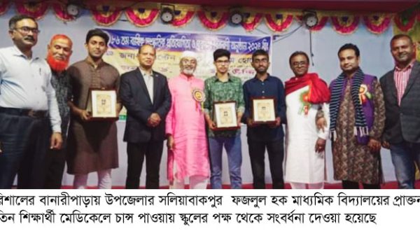 রাহাদ সুমন, বিশেষ প্রতিনিধি বরিশালের বানারীপাড়ায় উপজেলার সলিয়াবাকপুর ফজলুল হক মাধ্যমিক বিদ্যালয়ের প্রাক্তন তিন শিক্ষার্থী মেডিকেলে চান্স পাওয়ায় স্কুলের পক্ষ থেকে সংবর্ধনা দেওয়া হয়েছে। সোমবার ( ৪ মার্চ) রাতে বিদ্যালয়ের বিস্তারিত ...