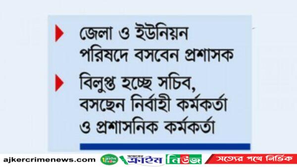 অনলাইন ডেস্ক বড় ধরনের পরিবর্তন আসছে স্থানীয় সরকারের প্রতিষ্ঠানগুলোতে। ‘প্রশাসক’ বসাতে সিটি করপোরেশন ও পৌরসভার পর এবার জেলা পরিষদ আইন, ২০০০ এবং স্থানীয় সরকার (ইউনিয়ন পরিষদ) আইন সংশোধন করা হচ্ছে। বিস্তারিত ...