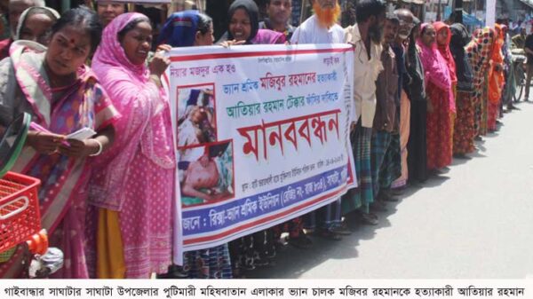 শহীদুল ইসলাম শহীদ,(গাইবান্ধা) প্রতিনিধিঃ গাইবান্ধার সাঘাটার সাঘাটা উপজেলার পুটিমারী মহিষবাতান এলাকার ভ্যান চালক মজিবর রহমানকে হত্যাকারী আতিয়ার রহমান টিক্কার ফাঁসির দাবিতে মানববন্ধন অনুষ্ঠিত হয়েছে। সাঘাটা উপজেলা ভ্যান শ্রমিক ইউনিয়নের উদ্যোগে বিস্তারিত ...
