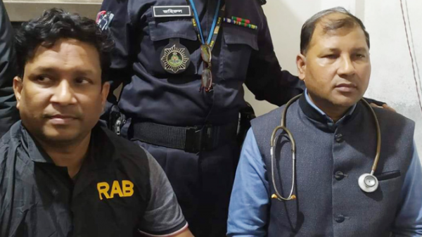 অনলাইন::: নারায়ণগঞ্জের সিদ্ধিরগঞ্জ উপজেলা থেকে এমএম ফরিদ নামে এক ভুয়া ডাক্তারকে আটক করেছে র্যাব। তিনি নিজেকে সেনাবাহিনীর অবসরপ্রাপ্ত এমবিবিএস ডাক্তার পরিচয়ে চিকিৎসা সেবা দিয়ে আসছিলেন। গতকাল বুধবার রাতে উপজেলার মিজমিজি বিস্তারিত ...