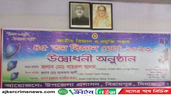 শফিকুল ইসলাম দিনাজপুর জেলা প্রতিনিধিঃ দিনাজপুরের বিরামপুরে জাতীয় বিজ্ঞান ও প্রযুক্তি সপ্তাহের ৪৫ তম বিজ্ঞান মেলা ২০২৩ এর শুভ উদ্বোধন অনুষ্ঠান অনুষ্ঠিত হয়েছে। বুধবার (২৯ নভেম্বর) বিরামপুর উপজেলা অডিটোরিয়ামে উপজেলা বিস্তারিত ...