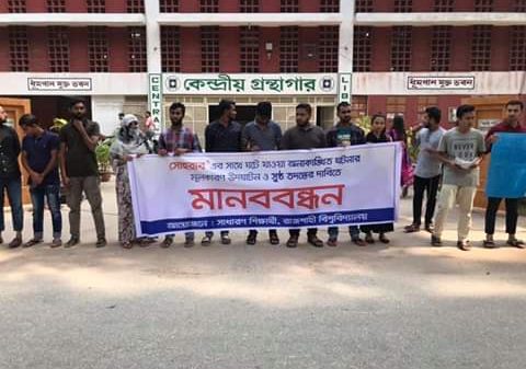 রাবি প্রতিনিধি:: রাজশাহী বিশ্ববিদ্যালয়ে সুষ্ঠু তদন্তের দাবীতে কেন্দ্রীয় গ্রন্থাগারের সামনে সাধারণ শিক্ষার্থীদের ব্যানারেএক মানবন্ধন অনুষ্ঠিত হয়েছে। উল্লেখ্য যে, গত ১৫ই নভেম্বর শুক্রবার দিবাগত রাত আনুমানিক সাড়ে ১২টার দিকে রাজশাহী বিশ্ববিদ্যালয়ের বিস্তারিত ...