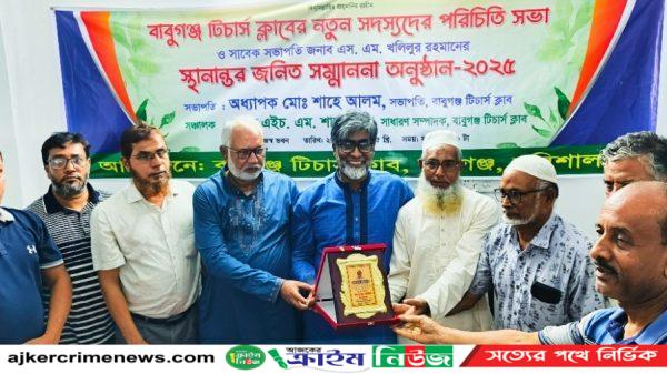 বাবুগঞ্জ(বরিশাল) প্রতিনিধি ঃ বাবুগঞ্জ টিচার্স ক্লাবের সাবেক সভাপতি সভাপতি অধ্যাপক এস.এম. খলিলুর রহমানকে স্থানান্তর জনিত বিদায়ী সংবর্ধনা ও সম্মাননা জানানো হয়েছে। বৃহস্পতিবার সন্ধ্যায় ক্লাবের নিজস্ব নতুন ভবনে এক অনাড়ম্বর অনুষ্ঠানে বিস্তারিত ...