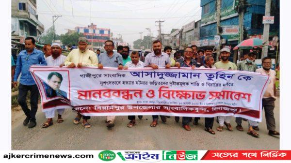 শফিকুল ইসলাম দিনাজপুর জেলা প্রতিনিধি: গাজীপুরে সাংবাদিক আসাদুজ্জামান তুহিন হত্যার প্রতিবাদে দ্রুত বিচার ও সাংবাদিকদের নিরাপত্তা নিশ্চিতের দাবিতে বিরামপুরে র্যালী, মানববন্ধন ও বিক্ষোভ সমাবেশ অনুষ্ঠিত হয়েছে। (১২ই বিস্তারিত ...