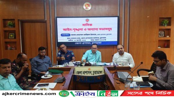 মাহমুদ হাসান রনি, চুয়াডাঙ্গা প্রতিনিধিঃ চুয়াডাঙ্গায় জেলা আইন শৃঙ্খলা কমিটির মাসিক সভা অনুষ্ঠিত হয়েছে। রোববার সকাল ১০টায় চুয়াডাঙ্গা জেলা প্রশাসকের সম্মেলন কক্ষে জেলা প্রশাসক মোহাম্মদ জহিরুল ইসলামের সভাপতিত্বে আইন শৃঙ্খলা বিস্তারিত ...